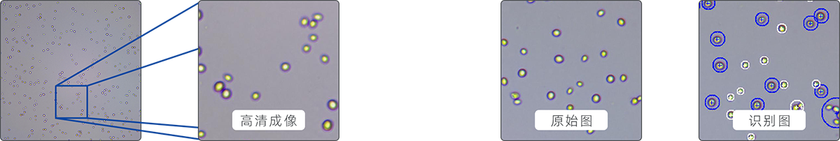 儀器配置高倍數(shù)光學(xué)放大和高清彩色相機(jī),讓細(xì)胞成像更清晰(儀器可實(shí)時(shí)預(yù)覽細(xì)胞圖像);同時(shí)智能的軟件圖像處理算法,確保高精準(zhǔn)性的細(xì)胞圖像識別(案例細(xì)胞圖為酒酵母)。