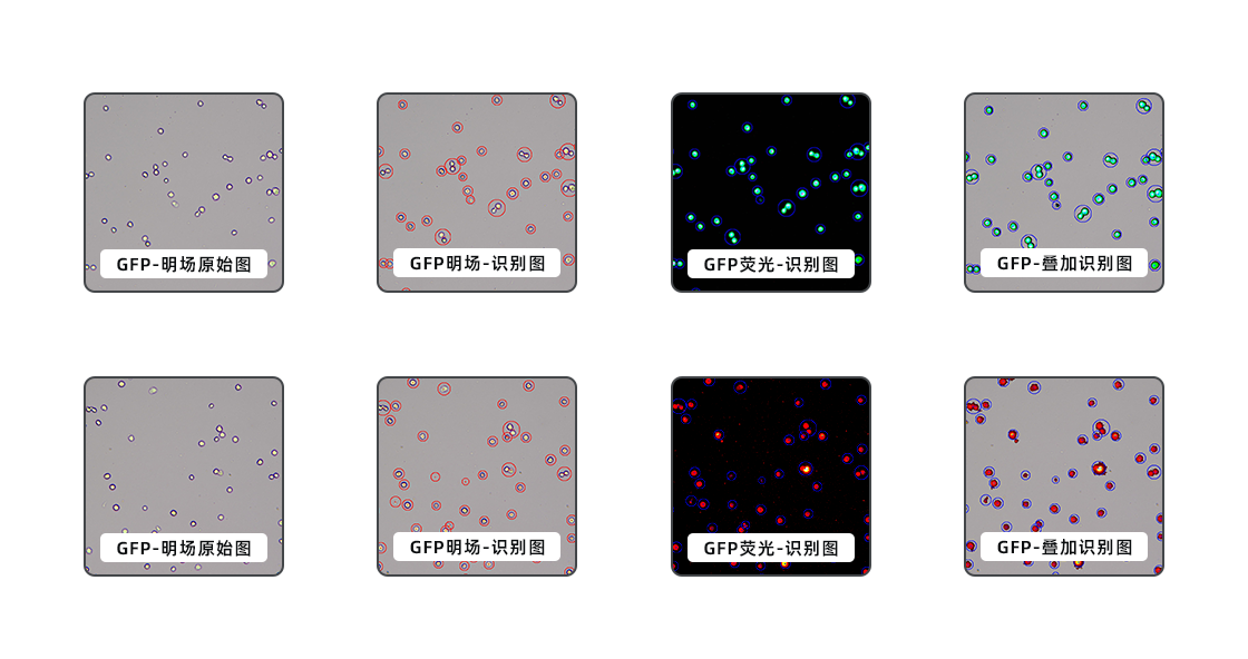 博大博聚熒光細(xì)胞計(jì)數(shù)、分析儀均配置了“轉(zhuǎn)染實(shí)驗(yàn)”模式,設(shè)計(jì)用于處理熒光標(biāo)記的細(xì)胞,如“綠色熒光蛋白GFP”和“紅色熒光蛋白RFP”(其他熒光蛋白類型的分析模式可按需定制)。儀器配備智能分析功能,可以自動計(jì)數(shù)和分析熒光標(biāo)記的細(xì)胞,減少人為誤差。