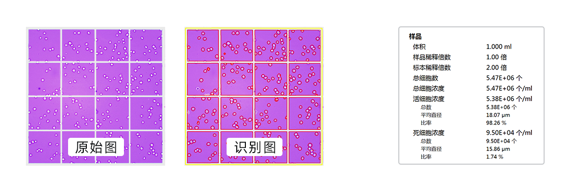 ·將加樣后的血細胞計數(shù)板放至細胞計數(shù)儀(JSY-SC-031H)的載物臺上,選擇對應(yīng)的計數(shù)模式,即可開始細胞計數(shù)分析(濃度計算公式=(四個大方格內(nèi)細胞數(shù)之和)/4×(稀釋倍數(shù))×104)。