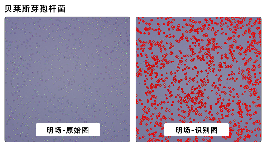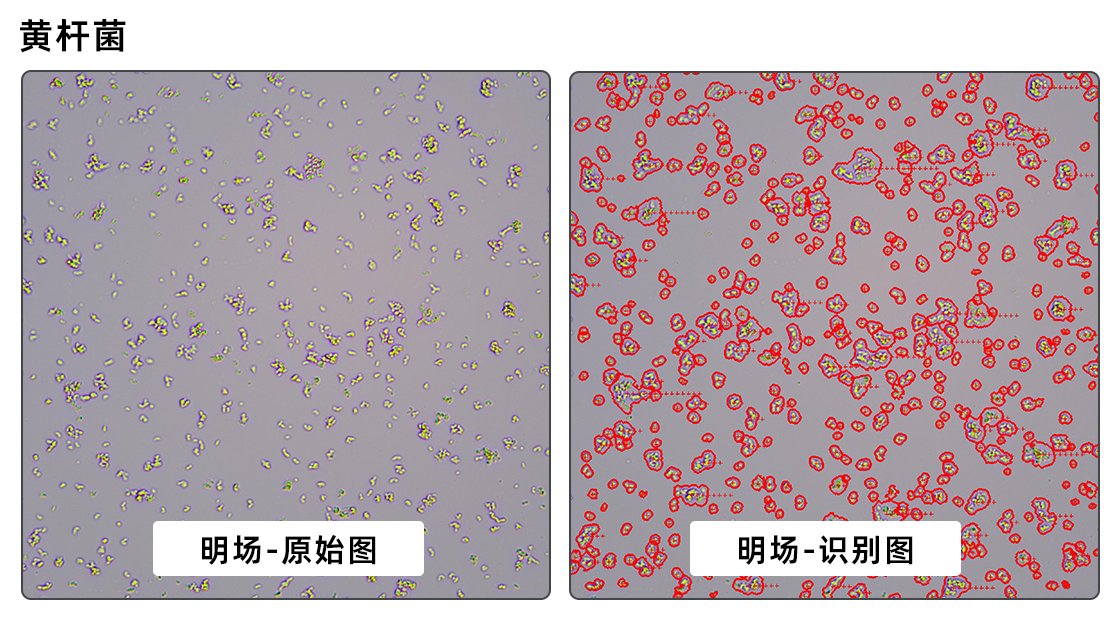 儀器配置明場(chǎng)+雙色熒光通道,采用熒光染色法計(jì)算活率,排除背景雜質(zhì)對(duì)目標(biāo)細(xì)胞的干擾,達(dá)到高效、直觀且精準(zhǔn)的微生物細(xì)胞計(jì)數(shù)。