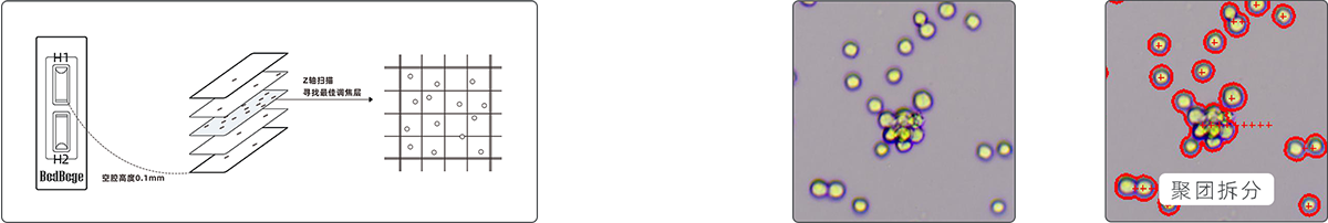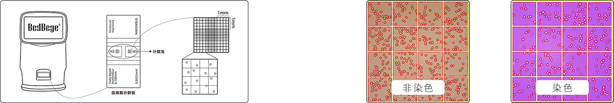 儀器內(nèi)置高倍數(shù)光學放大系統(tǒng)+千萬級彩色相機,讓細胞成像更清晰,可實時預(yù)覽細胞圖像;儀器參照“JJG 522-1988 血細胞計數(shù)板試行檢定規(guī)程”設(shè)計,實現(xiàn)血細胞計數(shù)板上機自動操作,濃度計算公式=(四個大方格細胞數(shù)之和)/4×104 (個細胞/mL),可人工復核計數(shù)結(jié)果。