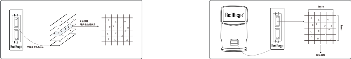 自適應(yīng)-智能自動對焦技術(shù)能夠自適應(yīng)性地調(diào)整焦距(Z軸掃描),確保在不同區(qū)域、不同狀態(tài)下的細(xì)胞圖像清晰、銳利。配合X、Y軸精密運動,可實現(xiàn)多區(qū)域圖像采集(最高21個靶面);細(xì)胞計數(shù)片采用兩孔設(shè)計,0.1mm計數(shù)池高度,細(xì)胞沉降快、分層少,計數(shù)更準(zhǔn)確。