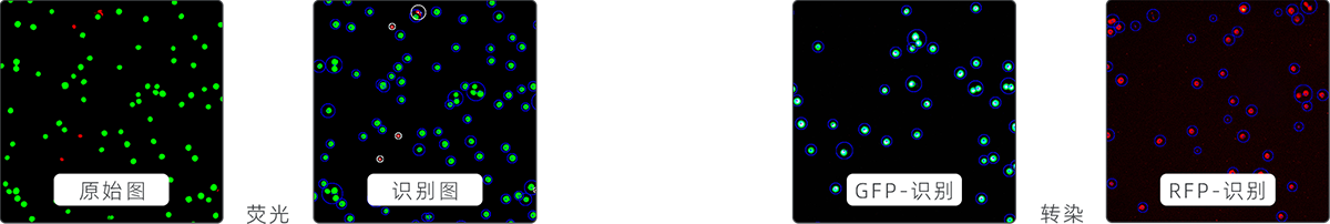 雙色熒光計數(shù):利用AOPI熒光染料,進(jìn)行紅綠雙色熒光標(biāo)記的細(xì)胞實驗;轉(zhuǎn)染率測定:可以測定綠色熒光蛋白(GFP)和紅色熒光蛋白(RFP)的轉(zhuǎn)染效率。