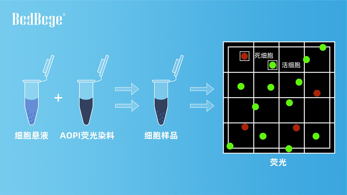 當(dāng)細(xì)胞樣品中的雜質(zhì)過多,明場下無法進(jìn)行準(zhǔn)確計(jì)數(shù)時(shí),我們可以在熒光通道下,用AOPI熒光染料對細(xì)胞進(jìn)行染色。