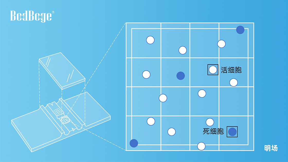 原理:正常的活細(xì)胞,胞膜結(jié)構(gòu)完整,能夠排斥臺(tái)盼藍(lán),細(xì)胞不被染色;而死細(xì)胞的胞膜不完整,通透性增加,既死細(xì)胞會(huì)被染成藍(lán)色,利用臺(tái)盼藍(lán)染料的特性便可區(qū)分活/死細(xì)胞。